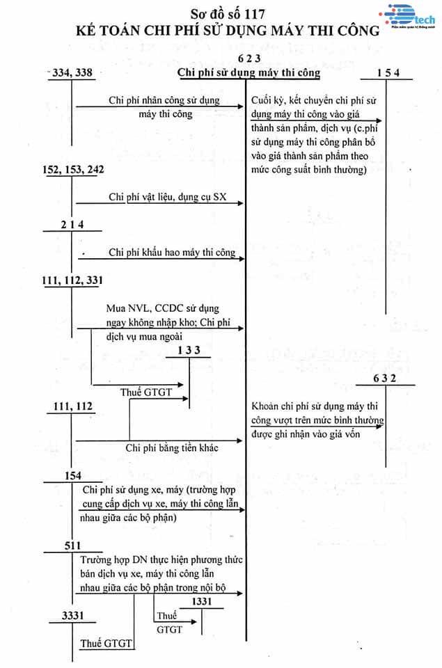 b) Trường hợp doanh nghiệp thực hiện xây lắp công trình hoàn toàn theo phương thức bằng máy thì không sử dụng tài khoản 623 "Chi phí sử dụng máy thi công" mà hạch toán toàn bộ chi phí xây lắp trực tiếp vào các TK 621, 622, 627.